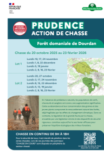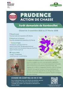 La saison de chasse 2025-2026 débutera prochainement en forêts domaniales de Dourdan et Rambouillet. Vous trouverez ci dessus l’affiche qui répertorie les journées de chasse prévues.